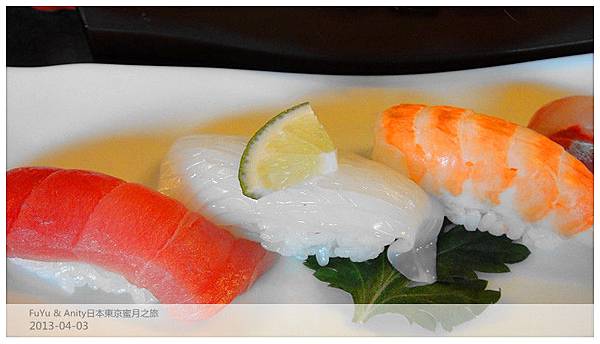 鮪魚、墨魚、甜蝦、旗魚握壽司一字排開,
