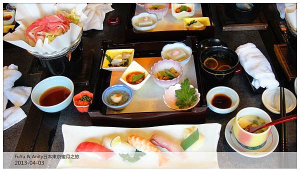 服務生收走這些盤子之後才接著端上火鍋蔬菜盤及天婦羅,因此沒有照到完整版的菜色全貌。