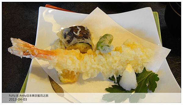 肥碩的鮮蝦、蔬菜,裹上的麵衣恰到好處,吃得到麵衣的酥脆及食材的鮮美。